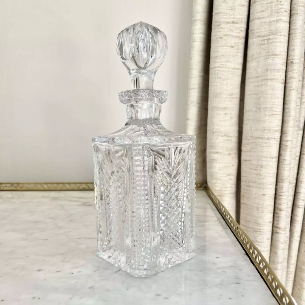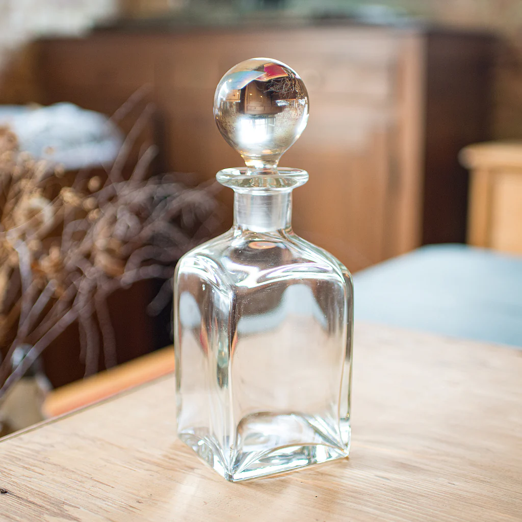 Ship’s decanter (pojemnik okrętowy) ma rozszerzoną, stabilną podstawę i wysokość około 20-27 cm. Potem masz globe (kulisty korpus), shaft and globe, krucyform (krzyżowa podstawa). Szlify? Diament, gwiazda na spodzie, czasem panele ośmiokątne. Każdy kształt ma swoją logikę, ship’s powstał dosłownie dla statków, żeby nie przewracał się przy kołysaniu.